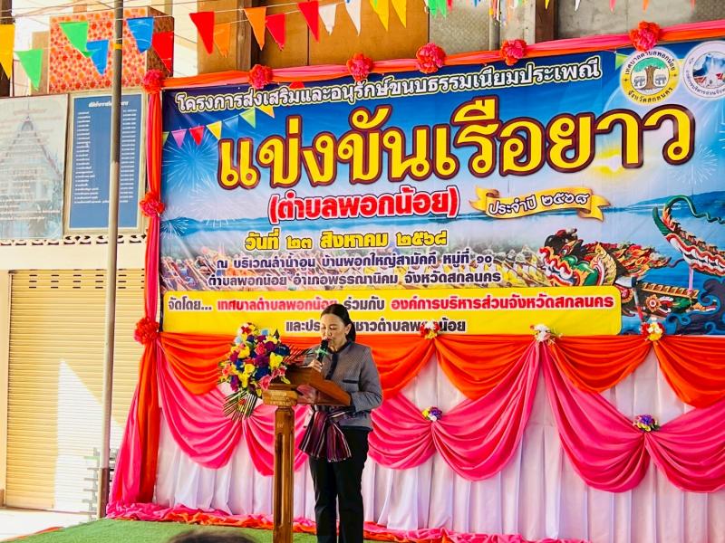 เทศบาลตำบลพอกน้อย ร่วมกับองค์การบริหารส่วนจังหวัดสกลนคร โดยมี นางนฤมล สัพโส นายกองค์การบริหารส่วนจังหวัดสกลนคร เป็นประธานในพิธีเปิดโครงการส่งเสริมและอนุรักษ์ขนบธรรมเนียมประเพณีแข่งขันเรือยาว เทศบาลตำบลพอกน้อย ประจำปีงบประมาณ พ.ศ.2568