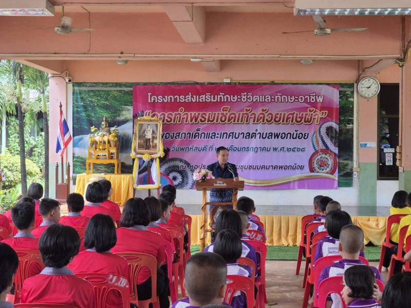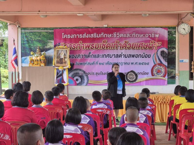 เข้าร่วมโครงการส่งเสริมทักษะชีวิตและทักษะอาชีพ “การทำพรมเช็ดเท้าด้วยเศษผ้า” โดยสภาเด็กและเทศบาลตำบลพอกน้อย ณ หอประชุมโรงเรียนชุมชนบดมาดพอกน้อย ตำบลพอกน้อย อำเภอพรรณานิคม จังหวัดสกลนคร