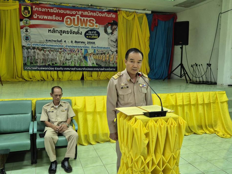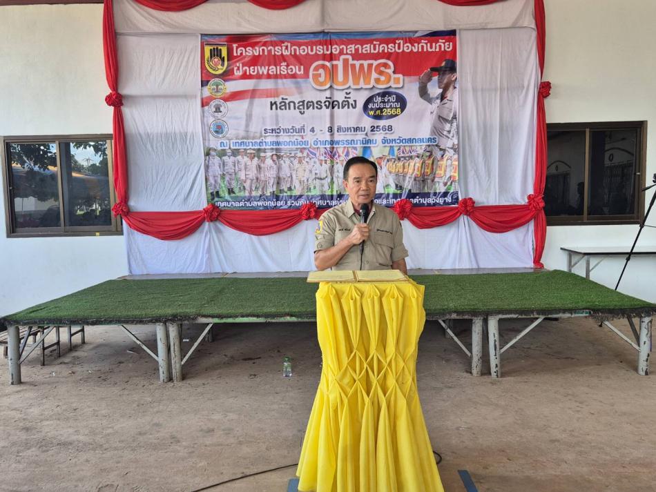 ท่านนายกเสน่ห์ วจีสิงห์ นายกเทศมนตรีตำบลพอกน้อย ประธานในพิธีเปิดโครงการฝึกอบรมอาสาสมัครป้องกันภัยฝ่ายพลเรือน(อปพร.) หลักสูตรจัดตั้ง ระหว่างวันที่ 4-8 สิงหาคม 2568 [4 สิงหาคม 2568]
