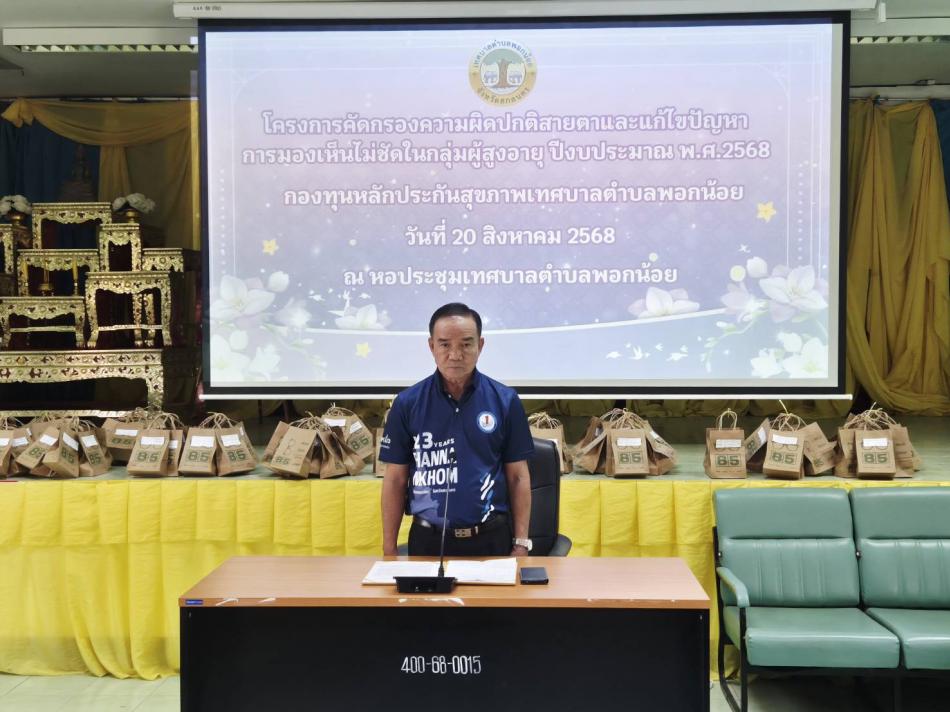 ท่านนายกเสน่ห์. วจีสิงห์ นายกเทศมนตรีตำบลพอกน้อย เป็นประธานในพิธีเปิดโครงการคัดกรองความผิดปกติสายตาและแก้ไขปัญหาการมองไม่เห็นไม่ชัดในกลุ่มผู้สูงอายุ [20 สิงหาคม 2568]