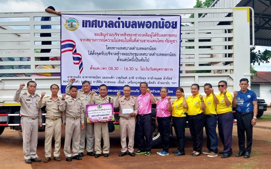 เทศบาลตำบลพอกน้อย นำโดย ท่านนายกเสน่ห์ วจีสิงห์ นายกเทศมนตรีตำบลพอกน้อย เป็นตัวแทนพี่น้องเดินทางไปมอบเงินสด และสิ่งของที่พี่น้องชาวตำบลพอกน้อยได้ร่วมกันบริจาค ให้กับผู้ประสบภัยในเขตชายแดนไทย - กัมพูชา [13 สิงหาคม 2568]