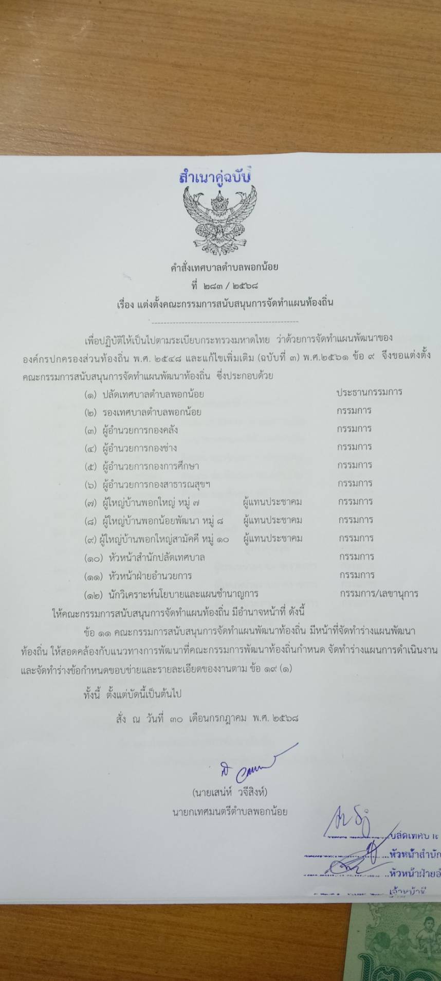 คำสั่งแต่งตั้งคณะกรรมการสนับสนุนแผนพัฒนาท้องถิ่น
